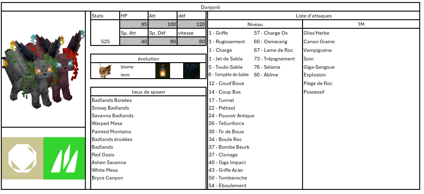 Donjonli est un pokémon originaire du datapack "Extra Eeveelutions", il a été remodel par Fluttershy_aqua pour le compte d'Évolicraft